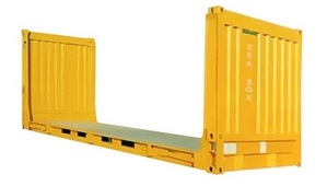 20-ти футовый контейнер типа "Flat Rack". Контейнер, не имеющий боковых стенок, но имеющий такое же основание, как контейнер-платформа. Этот общий термин применим для любого универсального контейнера, не имеющего жестких боковых стенок или заменяющих их рам, способных выдерживать все нагрузки, которые может нести или передавать боковая стенка контейнера общего назначения, и имеющего по этой причине раму основания, подобную раме контейнера-платформы |