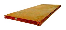 20-ти футовый контейнер типа "Platform". Грузовая платформа, вообще не имеющая верхней рамы, но той же длины и ширины, что и основание контейнера данной серии, и оборудованная верхними и нижними угловыми фитингами, расположенными в плане как и на других контейнерах серии 1, таким образом, чтобы можно было использовать некоторые одинаковые приспособления для подъема и закрепления. |